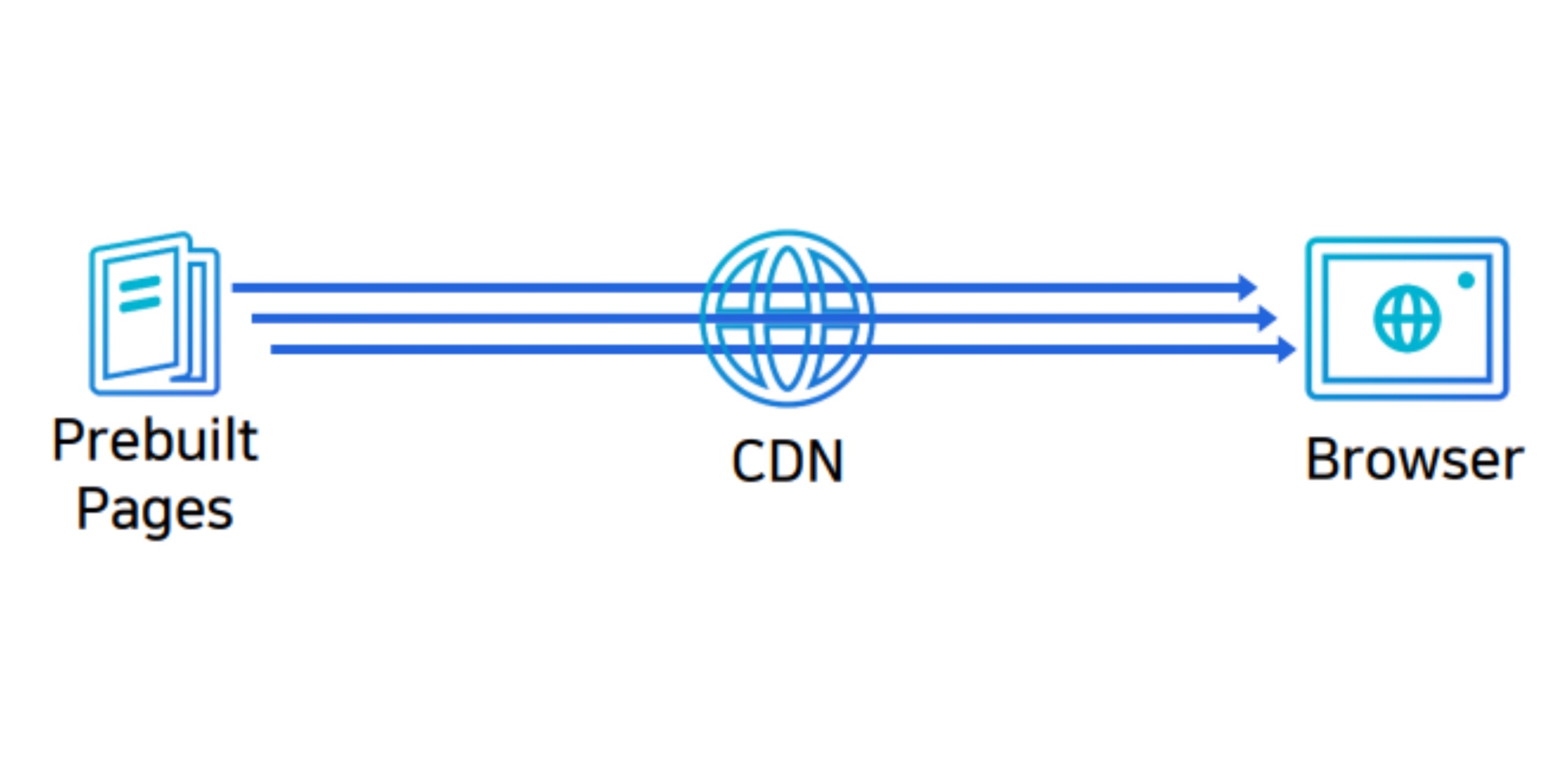 마크업 요소와 다양한 API 를 통해 만든 정적 웹 사이트를 Pre-Render 한 것을 CDN(Content Delivery Network)을 통해 열람할 수 있습니다.