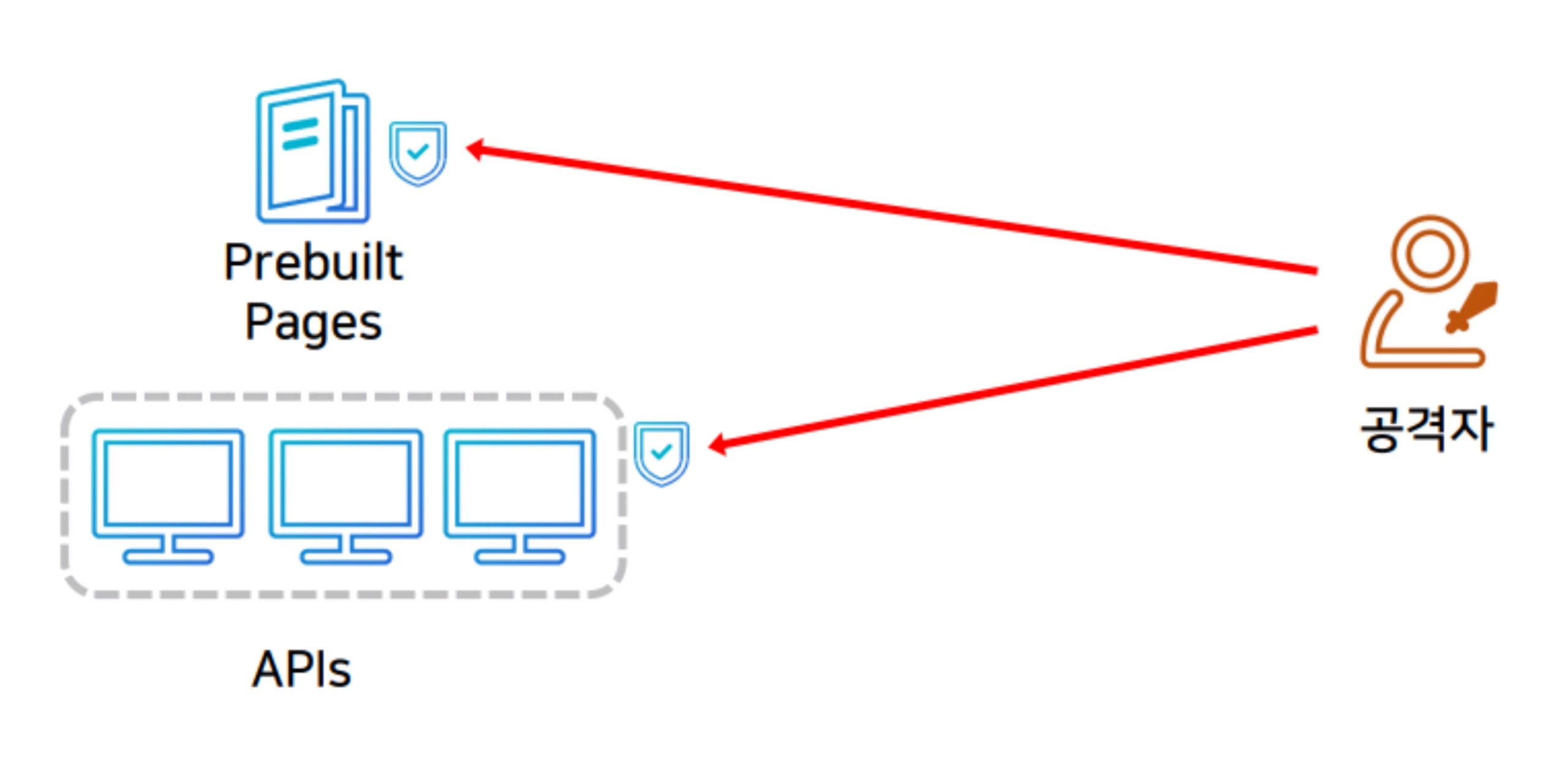 JAM Stack 은 API 를 통해 정적 사이트를 생성합니다. 여기서 사용되는 API 는 JAM Stack 을 활용한 각 프레임워크에서의 마이크로 서비스로서, 사이트 생성을 위한 프로세스가 추상화되어 있으므로 그만큼 공격 노출 범위가 감소하게 됩니다.